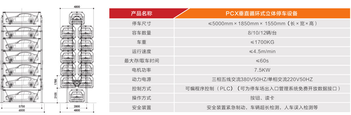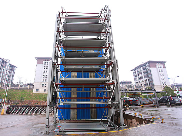 垂直循环类立体停车设备是采用与地面垂直方向做循环运动而达到存取车辆的停车设备。其工作原理是通过减速电机带动传动机构,在牵引构件链条上,每隔一定距离安装一个存车托架,存车托架随链条一起作循环运动,从而达到存取车辆的目的。