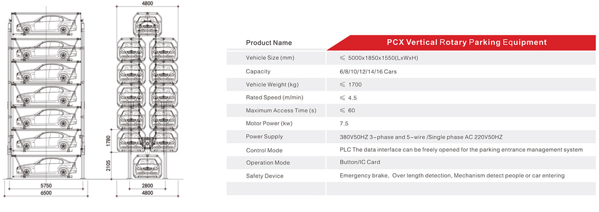The vertical rotary parking system is doing circular motion in vertical direction of the ground.Its working principle to activate the driving mechanism by gear motor,the car brackets are installed at regular intervals on the traction chain,through the cycle movement to access vehicle.